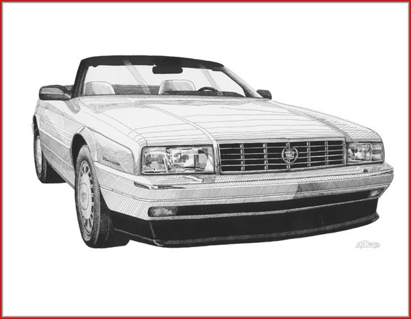 These limited edition prints are a labor of love. The original pen and ink drawings were hand drawn in a freehand style (meaning no straight edges used.) The number of prints made are limited to a small run, all personally inspected, hand signed and numbered by artist. When they're gone they're gone! The image size is approximately 10" x 19" printed on 20" x 26" fine quality artist paper and looks great in a contrasting dark color mat with a gold inner mat. These are a must have for any classic car lover.